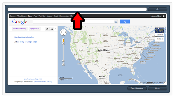 - Once you can see the website, click in the right bottom on the button Take Snapshot. A picture of the website will automatically be added to the Diary.