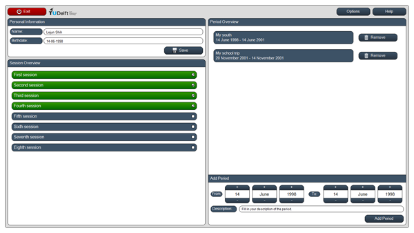 - (4) Add Period: in this section it is possible to add periods. First, you must add begin and end dates, add a description of the therapy and click on the button Add Period. The period will then appear in the Period Overview.