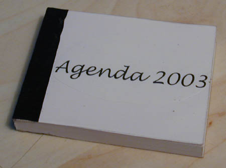 I like to have a very small agenda (about 70 by 60 mm) but these are very hard to find. So here I describe how to make them yourself.