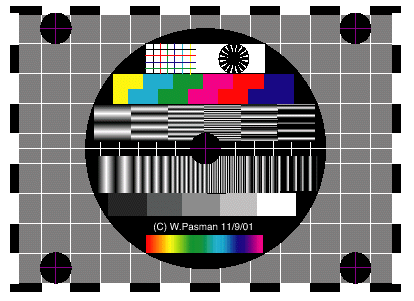 This testimage is especially designed to test the quality of video cameras, but it can also be used to test your printer or monitor. This is the only vector format testimage of this kind that is -as far as I know- is available on the internet. You can print it on paper for testing your camera, on any size you want, without degrading the quality. You can also scale it to any size in the acrobat viewer, again without quality loss.